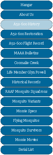 During the 70th Anniversary of the RAAF at Richmond Base in 1991, A52-600 was featured in a display, which generated a great deal of public interest. As a result, Alan Davies a pilot of A52-600 decided in July 1992 to initiate the foundation of the Mosquito Aircraft Association of Australia. Its main aim is to gather a support group of volunteer servicemen and civilians together, to assist in the mammoth task of restoring this historic aircraft.